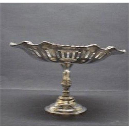 Lovely antique silverplated,round high pedestal comport, depicting beautiful pierced and engraved design,over fine scalloped body, Very fine condition with no dents, "bold spots" or repairs.It is high quality, heavy and well balanced piece that will last for another 80 and more years,if it is taken good care of it as it was so far, Measures about 9" in diam. and about 5" high, US Buyer to pay 9.00 for shipping, plus insurance.THANKS.