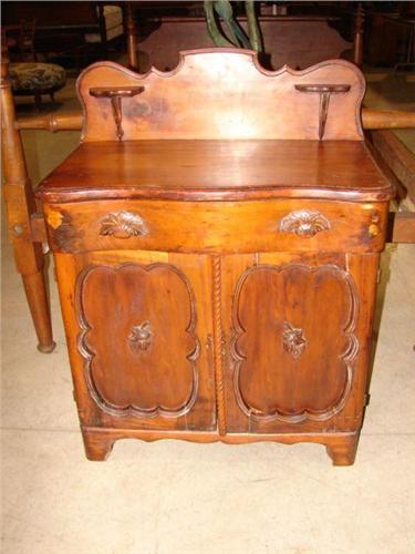 VICTORIAN SOFTWOOD WASHSTAND WITH GALLEY. Reverse serpentine drawer over two blind doors. 38.5” H, 29” W, 17.5” D