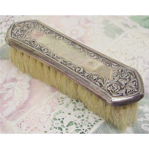 LOVELY VICTORIAN SMALL BRUSH,STERLING IS MADE IN A RAISED ART NOUVEAU PATTERN,EXCELLENT CONDITION CONSIDERING AGE,BUT FOR SMALL "POCK" MARKS HERE AND THERE FROM THE USE, as per images, measures 4 3/4" x 1 1/2",US Buyer to pay 7.00 for shipping plus insurance.Thanks.