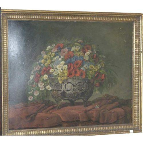 VICTORIAN STILL LIFE, in the 18th century taste, CONDITION REPORT: oil on board, warped, scattered minor abrasians.