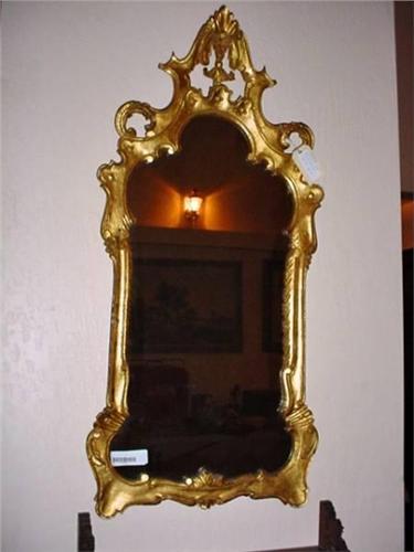 VICTORIAN STYLE GOLD FRAMED WALL MIRROR. 35" X 18"