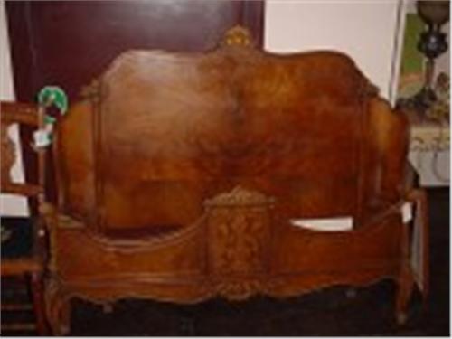 VICTORIAN STYLE HEAD AND FOOT BOARD, VERY ORNATE HAND CARVING, BIRDS-EYE MAPLE WITH INLAY. ORIGINAL