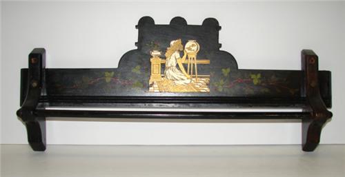 VICTORIAN TOWEL RACK. Paint decorated with girl and fish bowl. 22.5” L