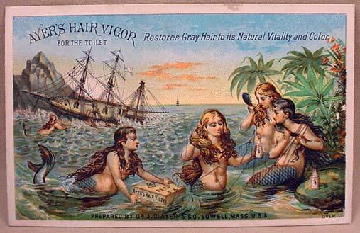 VICTORIAN TRADE CARD - AYER'S HAIR VIGOR - MERMAIDS