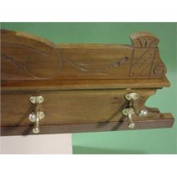 VICTORIAN WALNUT WALL HANGING COAT RACK. 5 replaced hooks. 46" L, 16.5" H
