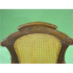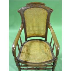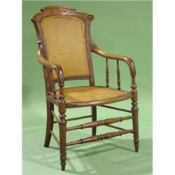 VICTORIAN WALNUT ARM CHAIR. Cane back and seat. 38" H to top of back, 22" W