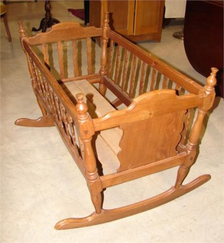 VICTORIAN WALNUT BABY CRADLE. 26" H, 37.5" L, 20" W