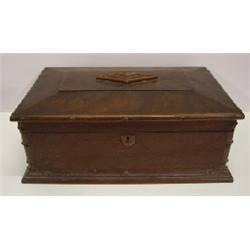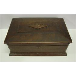 VICTORIAN WALNUT HINGED BOX. Original hinges and lock. Shows slight mildewing to bottom. 5.5” H, 15” W, 9.5” D