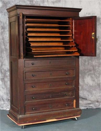 VICTORIAN WALNUT JEWELER'S OR SURVEYERS CABINET, 41" wide, 68" high, 19" deep, fitted with pull-outs, late 19th century, SHIPPING: See recommended third party shippers. This item can't be packed or shipped by seller.
