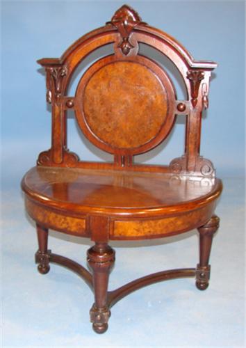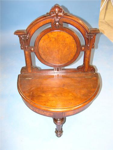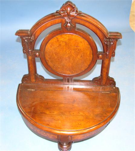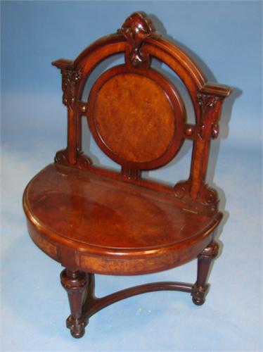 VICTORIAN WALNUT LIFT-LID HALL CHAIR. Ornately carved. 36” H, 25” W