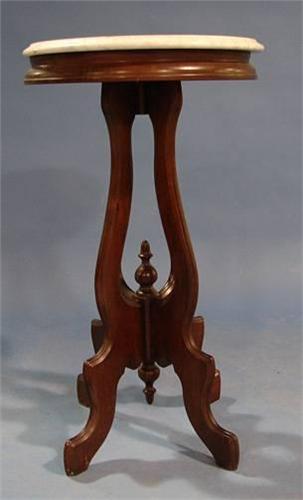 VICTORIAN WALNUT MARBLE TOP CANDLE STAND. White marble top. 29” H, 16” Dia.