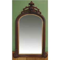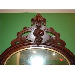 VICTORIAN WALNUT WALL MIRROR. Eastlake style. Decorated with berries & fruit carving at top. 29” x 44”