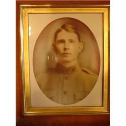 VICTORIAN WALNUT SHADOW BOX FRAME with World War I era soldier picture. 13" x 15.25" framed.
