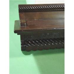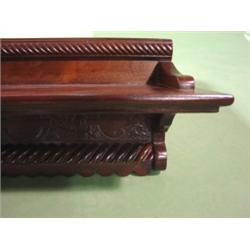 VICTORIAN WALNUT WALL HANGING SHELF. Ornate carved decoration at bottom. 9.5" H, 30" W, 7.5" D