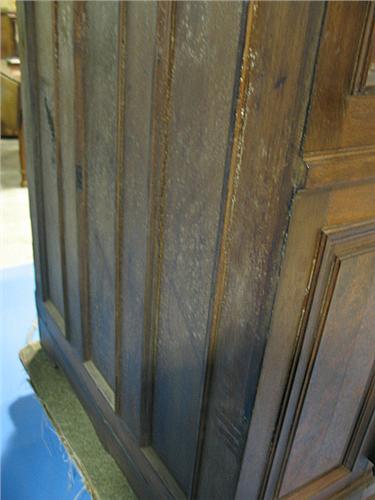 MASSIVE LATE 19TH CENTURY VICTORIAN WALNUT WOOTON DESK. Standard grade. Two massive front doors open to show numerous drawers and pigeonholes. Desk is ornately carved and marked on right door "Wooton Desk Co., Indianapolis, Indiana" 56.5" H, 42.75" W, 28.75" D