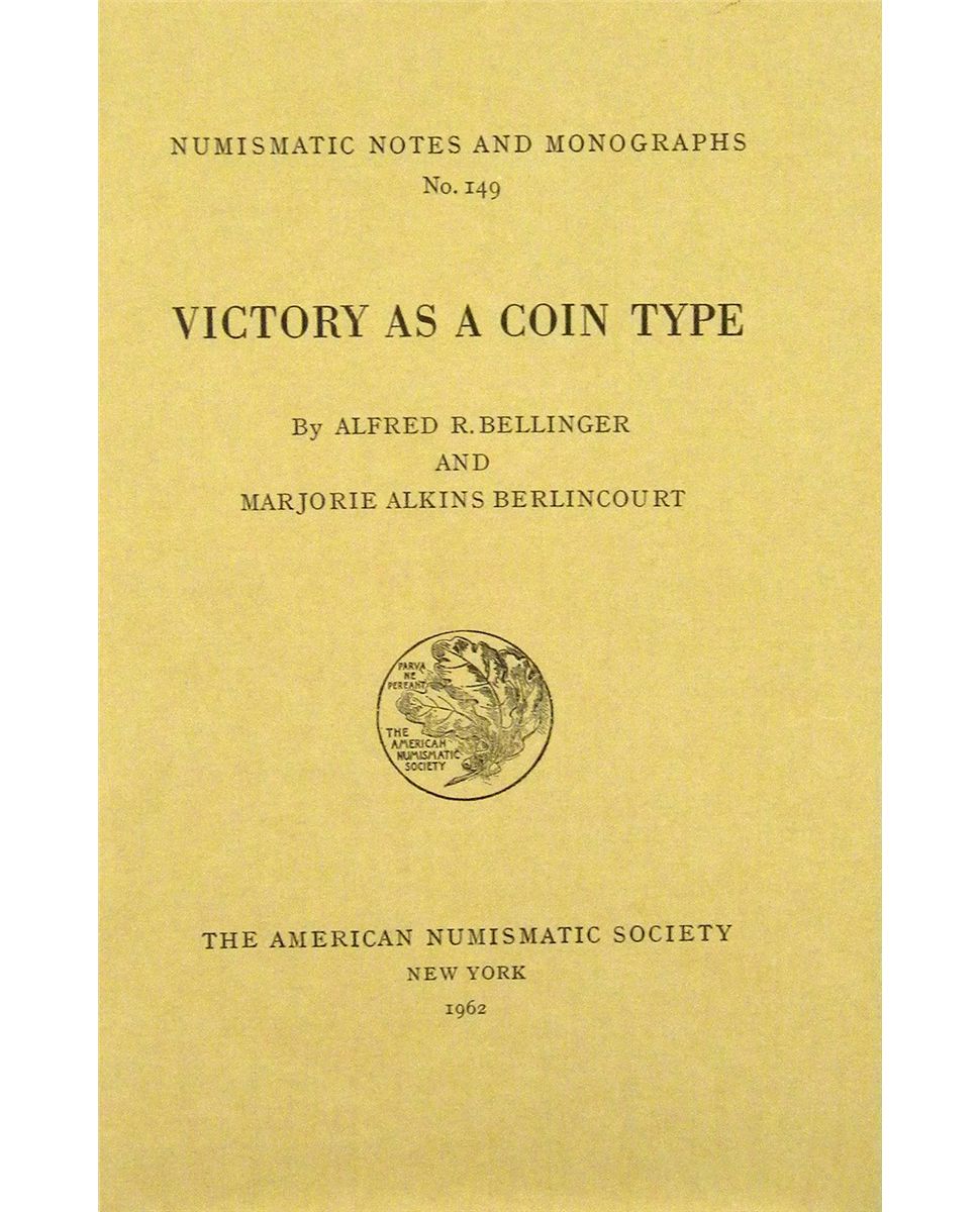 Bellinger, Alfred R., and Marjorie Alkins Berlincourt. VICTORY AS A COIN TYPE. New York: ANS, 1962. 8vo, original card covers. (6), 68 pages; 13 fine plates. Fine. Numismatic Notes and Monographs, No. 149.