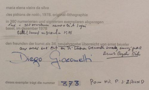 The work is accompanied by a certificate that is Hand Signed by the famous publisher Diego Giacometti, who edited the work in 1978 in Basel.