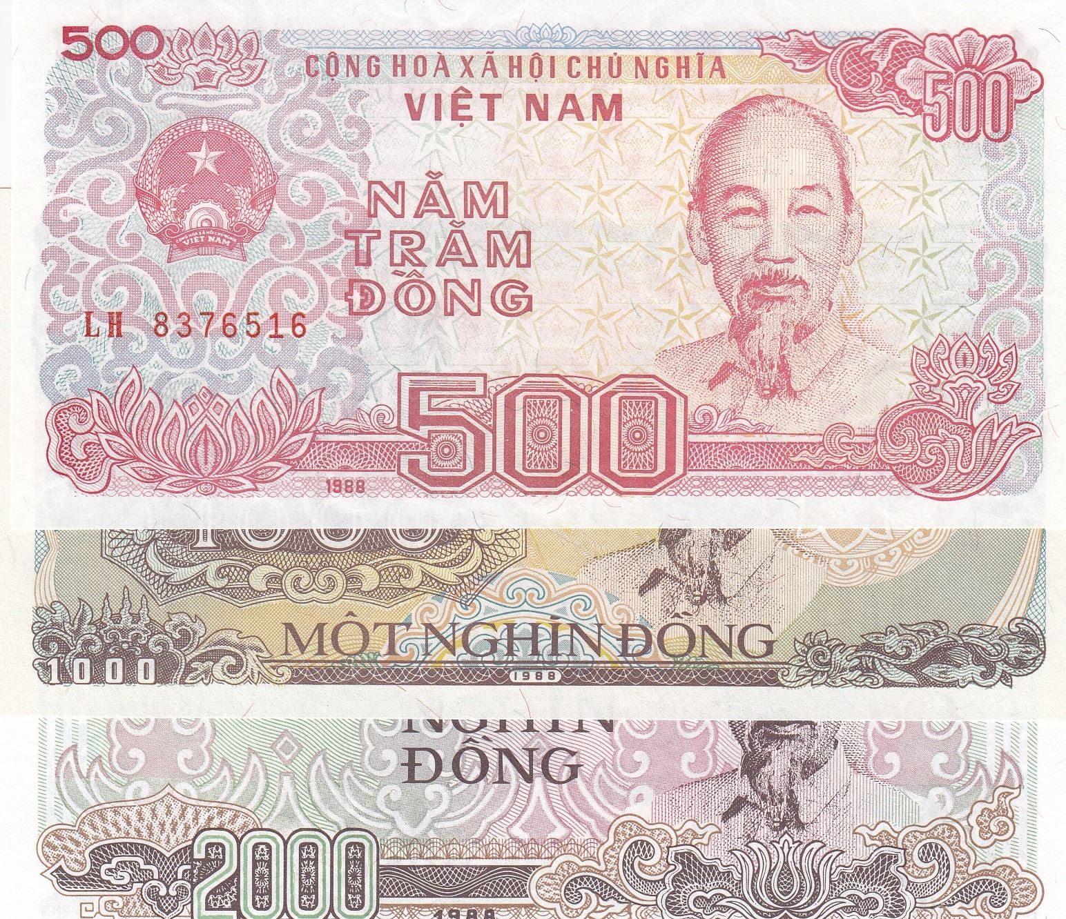 Viet Nam, 500 Dong, 1000 Dong, 2000 Don, 1988, UNC, p101/p102/p103, (Total 3 banknotes)