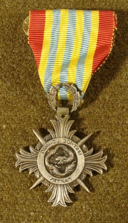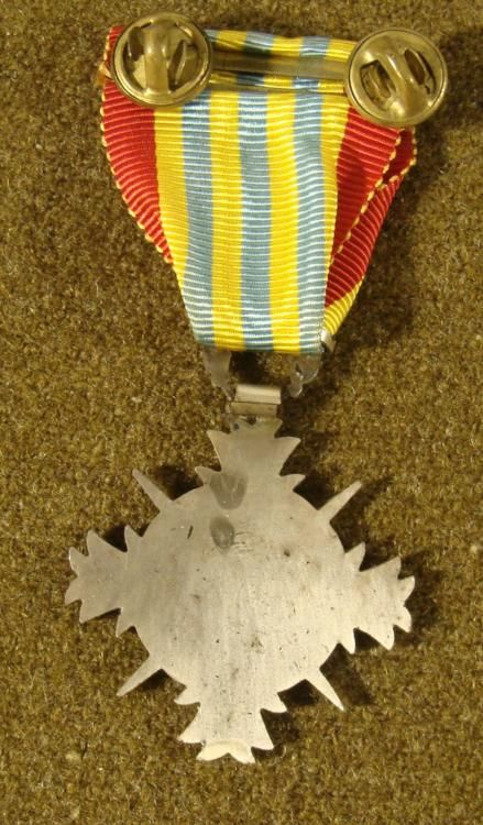 VIETNAM HONOR SERVICE MEDAL * CRIMP BACK W/RIBBON TOP HAS WREATH-MALTESE CROSS W/STARBURST-SNAKE IN CENTER *