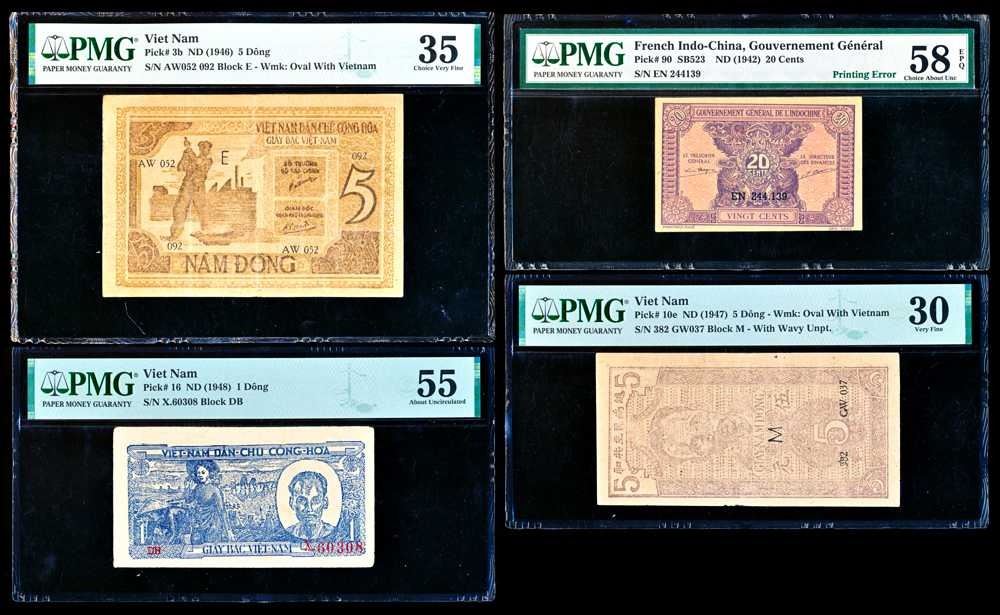 VIETNAM - Lot de 4 billets certifiEs PMG