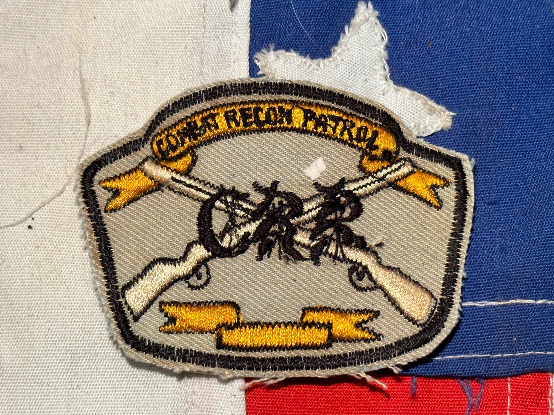 VIETNAM WAR COMBAT RECON PATROL SLEEVE PATCH. A RARE FIND. IT IS IN MINT OVERALL SHAPE AND CONDITION WITH A BEAUTIFUL OVERALL PATINA. A GREAT FIND AND AN EXCELLENT ADDITION TO YOUR COLLECTION. A VERY SCARCE FIND.