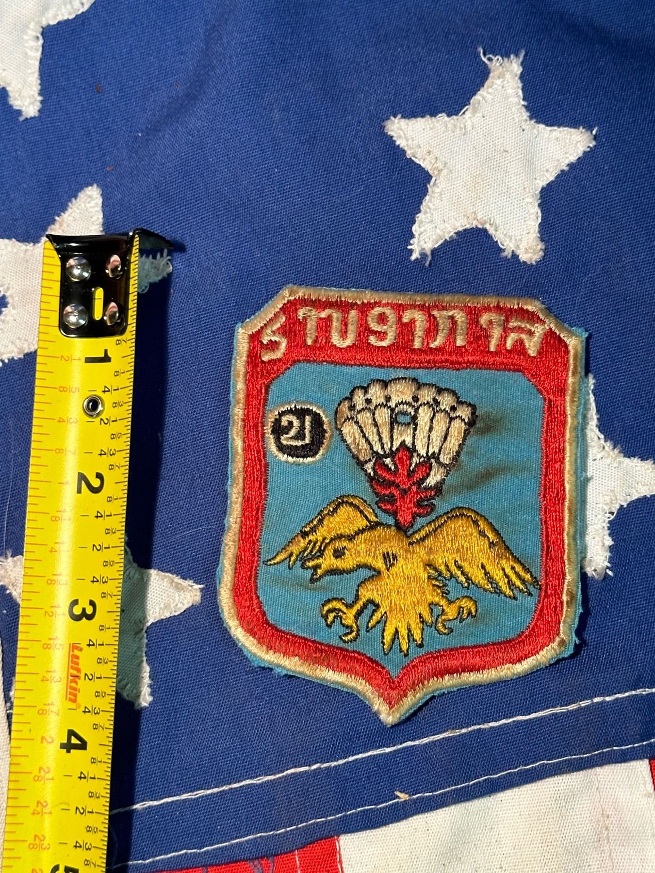 VIETNAM WAR SIDE BULLION SLEEVE PATCH. A RARE FIND. IT IS IN MINT OVERALL SHAPE AND CONDITION WITH A BEAUTIFUL OVERALL PATINA. A GREAT FIND AND AN EXCELLENT ADDITION TO YOUR COLLECTION. A VERY SCARCE FIND.