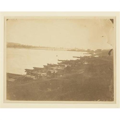 <B>VIEW DOWN EASTERN BRANCH WASHINGTON, D.C. CIRCA 1860S.</B></I> In period ink, obverse of image under matting: "View down Eastern Branch and frontons ready for laying from foot of E. 15th St." This period salt print. possibly photographed by A. J. Russell, measures approximately 7.75” x 5.75” mounted on card 10” x 8”. <BR><BR><B>Condition:</B></I> Fine, slight discoloring on card.<BR><BR><b>Shipping:</b> Flat Material, Small (<a target="_blank" href="http://www.heritageauctions.com/common/shipping.php">view shipping information</a>)