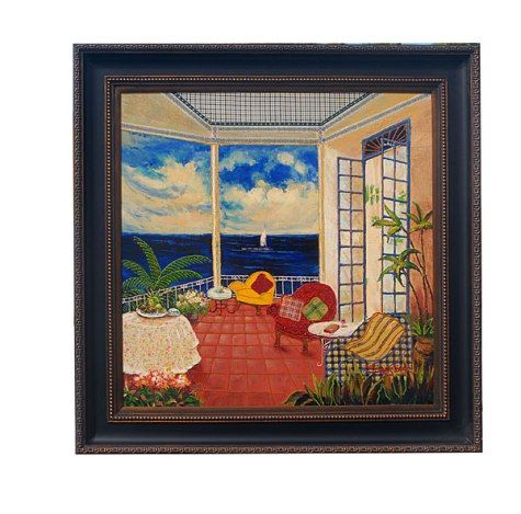 "VIEW OF THE SEA" - ORIGINAL HAND PAINTED OIL ON CANVAS - PROFESSIONALLY FRAMED - IMAGE 36x 36" - FRAMED 46x 46"