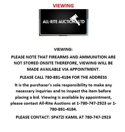 It is the purchaser's sole responsibility to make any necessary inquiries and to inspect the item before placing a bid. Viewing is available by appointment, please contact All-Rite Auctions at 1-780-747-2923 or 1-780-881-4184.