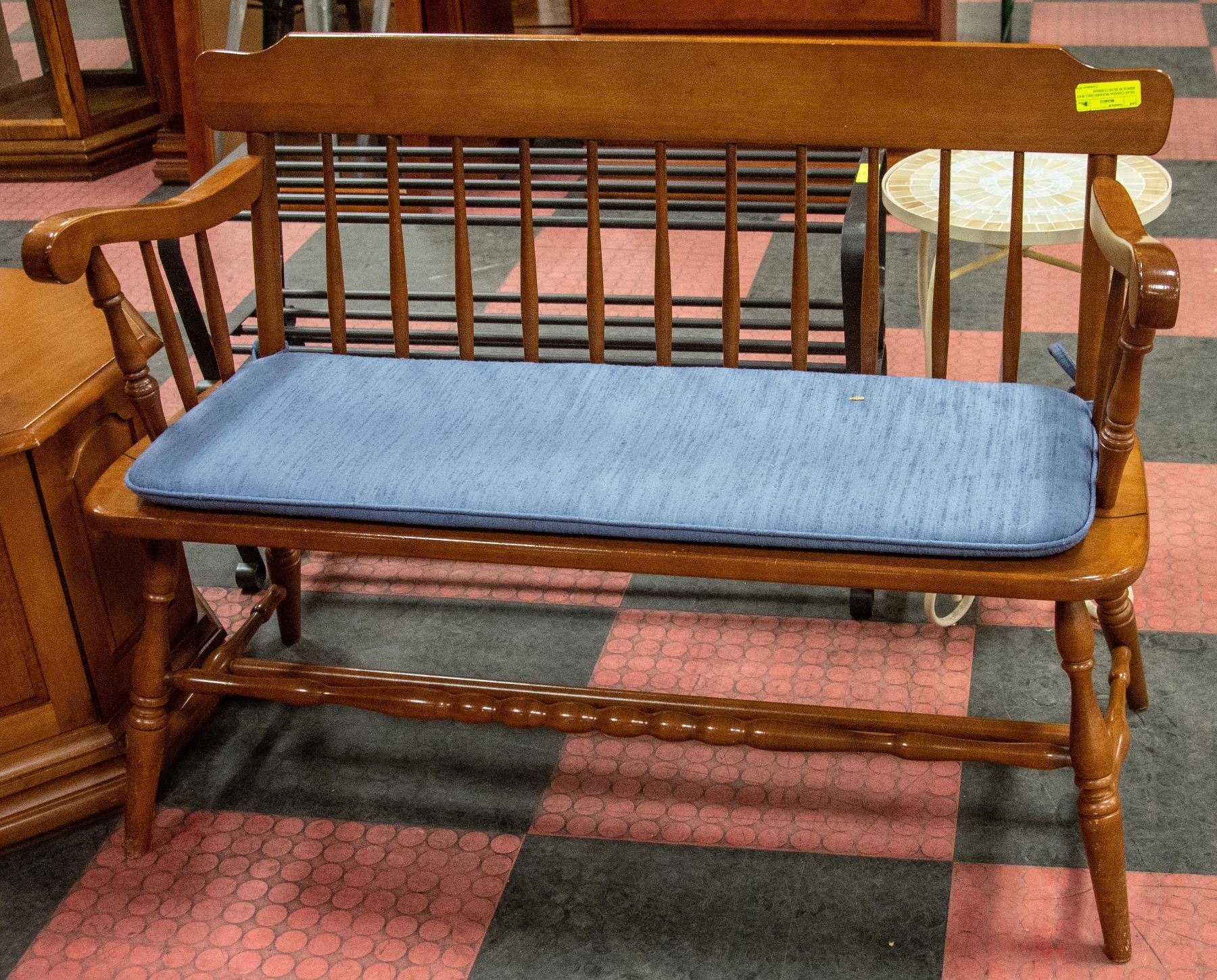 VILAS CANADA WOODEN HALLWAY BENCH W/ BLUE CUSHION