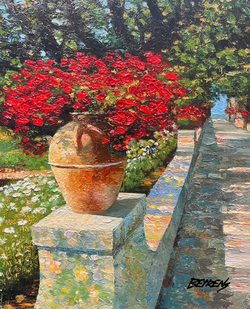 VILLA CIMBRby Behrens, Howard. Limited Hand Signed Heavily Embellished Stretched. Dimensions: 22 x 18. Excellent Condition.