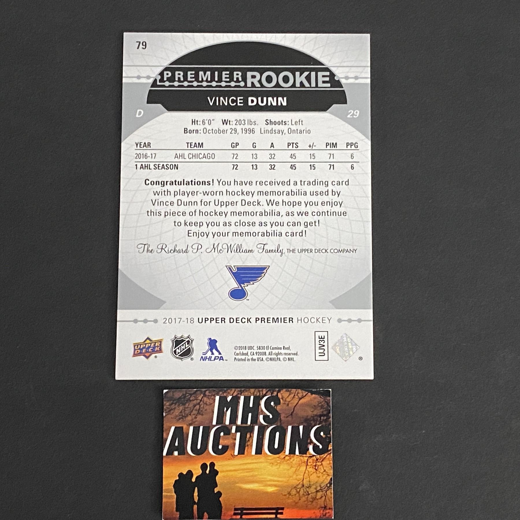 VINCE DUNN 2017-18 U.D PREMIER HOCKEY JERSEY CARD