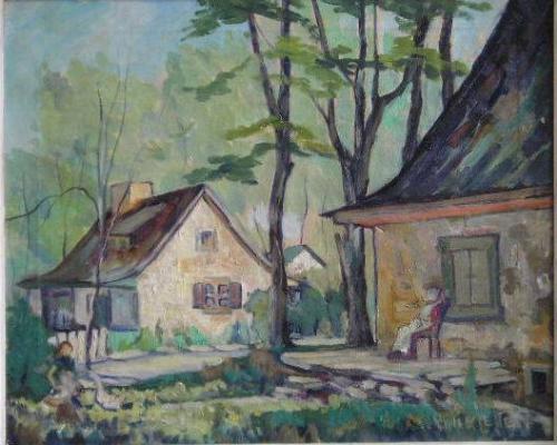 VINCELLETTE, Roméo, 1902-1979. "L'été". Huile sur toile, signée. Oil on canvas, signed. 18" x 22" - 45.6cm x 56cm.