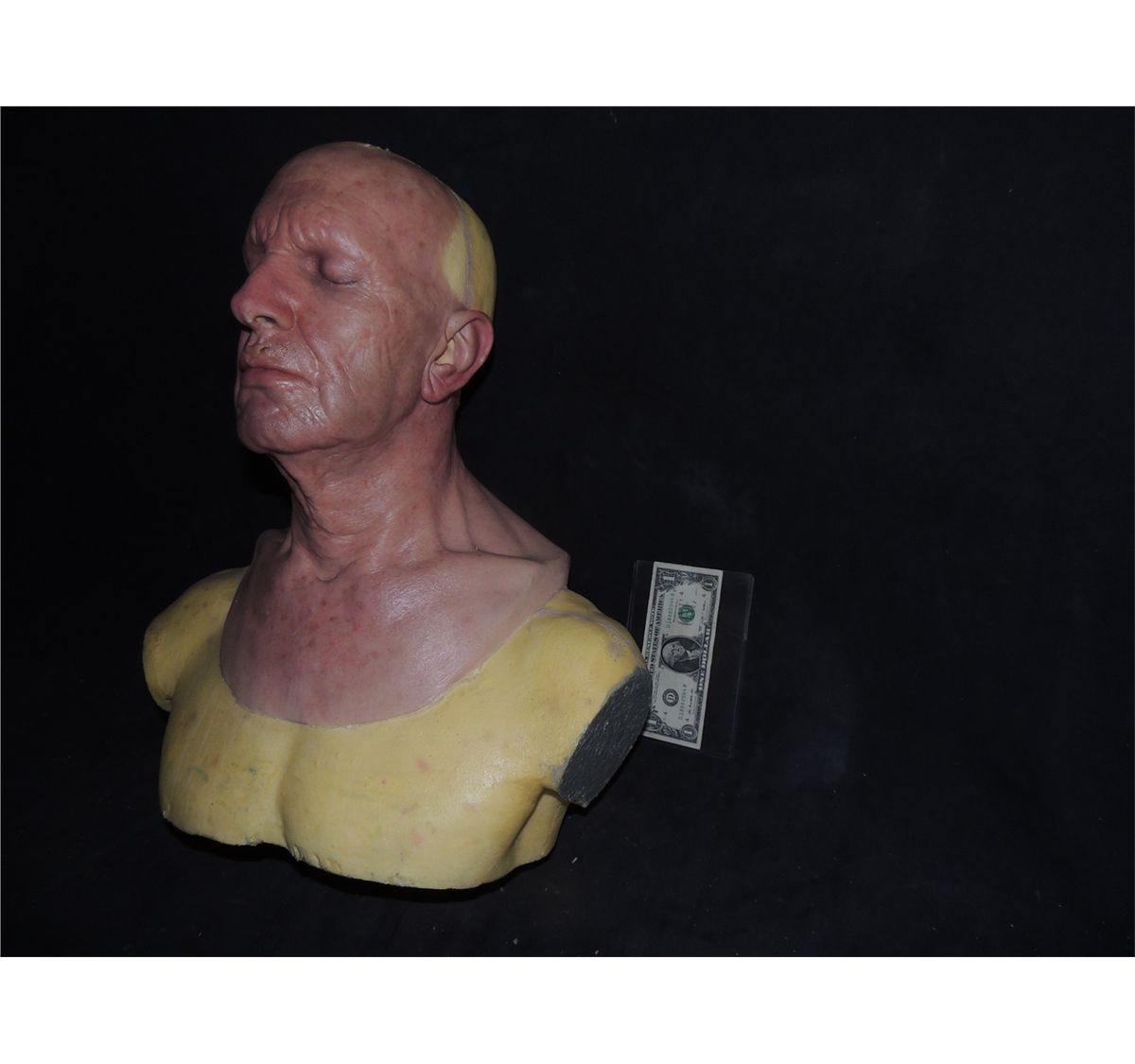 This is a very cool Vincent Price dull head and bust silicone appliance mask on bust with removable head.