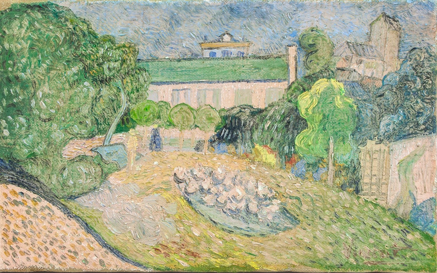 Oil on canvas, featuring a beautiful nature scene. Signed and attr. Vincent van Gogh (Dutch, 1853-1890) on the lower right corner. 9.3 x 14.8 in. (23.5 x 37.5 cm). Gallery label with notation on verso. Primarily self-taught and unappreciated during his lifetime, Vincent van Gogh made over 900 paintings and 1,100 works on paper during the decade that he worked as an artist. Influenced by Jean-Francois Millet and the Barbizon School artists, van Gogh’s early work comprises dour portraits of Dutch peasants and depressing rural landscapes. In 1886-88 he moved to Paris, where Impressionism and Neo-Impressionism had a big impact on his painting. He brightened his palette, experimented with shorter brush strokes, impasto, and complementary colors.