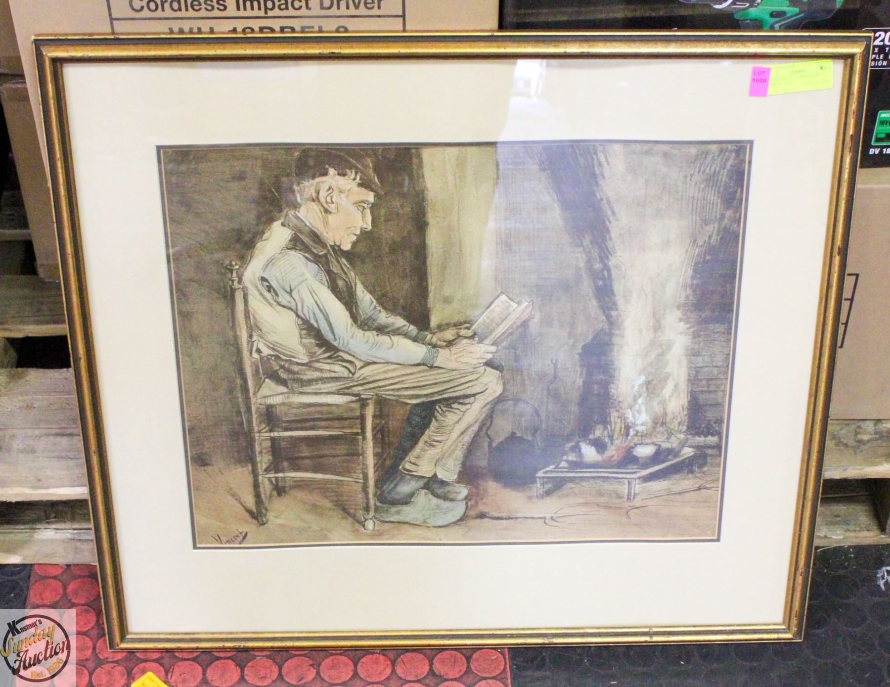 VINCINT READING HIS BOOK IN CHAIR 24" X 27"