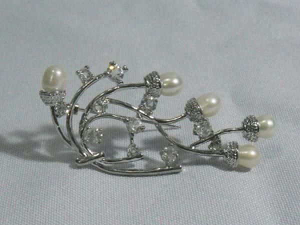 VINE WHITE PEARL CZ BROOCH AUTHENTIC PHILIPPINE PEARL M **|**|** VINE WHITE PEARL CZ BROOCH AUTHENTIC PHILIPPINE PEARL METAL SILVER ; MSRP: $150