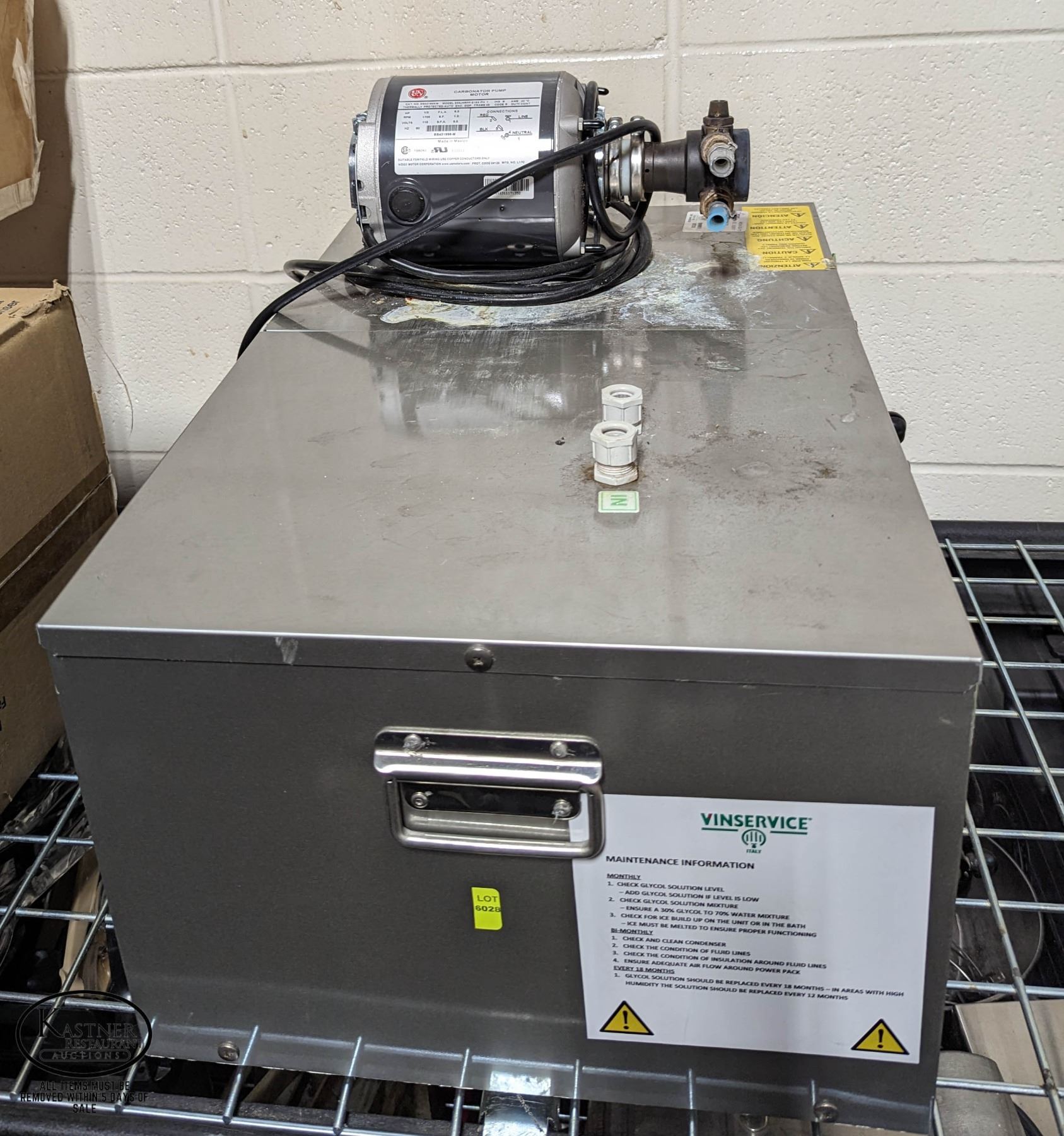 CARBONATOR PUMP. MODEL: SUPERFLAT. 115V. **ALL ITEMS MUST BE REMOVED BY 4:00PM, JULY 21ST, 2023. ALL ITEMS REMAINING AFTER 4:00PM, JULY 21, 2023 WILL BE CONSIDERED FORFEITED WITH NO REFUNDS TO THE BUYER WHATSOEVER. ALL ITEMS IN THIS AUCTION ARE SOLD IN UNTESTED CONDITION, DUE TO THE NATURE OF ONSITE AUCTIONS, WE ARE UNABLE TO TEST ITEMS PRIOR TO THE AUCTION. ABSOLUTELY NO REFUNDS WILL BE CONSIDERED FOR THIS AUCTION UNDER ANY CIRCUMSTANCE. WE RECOMEND TAKING ADVANTAGE OF VIEWING ON JULY 16TH, FROM 10:00AM UNTIL 4:00PM. PICK-UP IS AVAILABLE FROM JULY 18TH, UNTIL JULY 21ST, 10:00AM TO 4:00PM.
