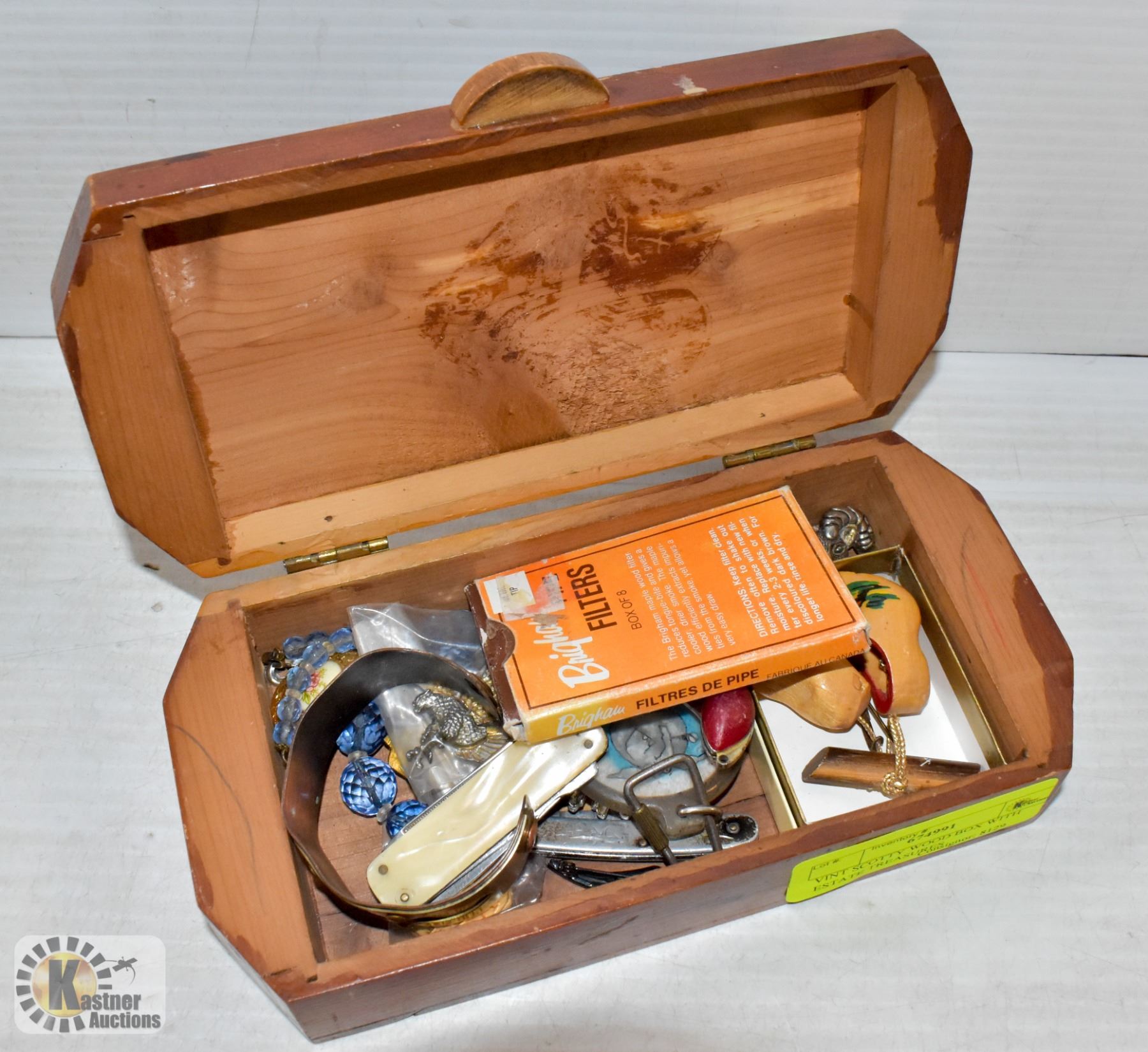 VINT SCOTTY WOOD BOX WITH ESTATE TREASURES
