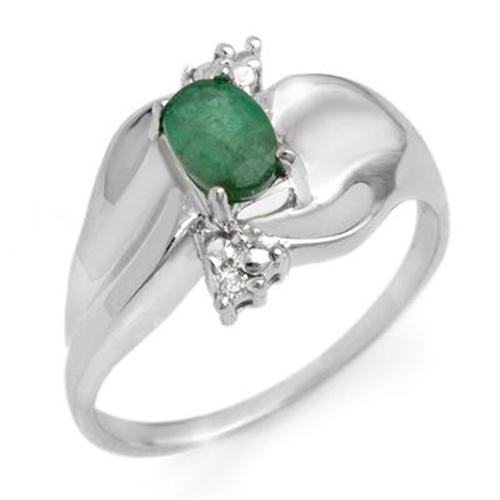 GENUINE 0.39 ctw DIAMOND & EMERALD LADIES RING IN 10K WHITE GOLD