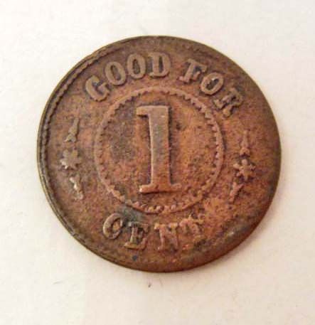 VINTAGE 1 CENT KNICKERBOCKER CURRENCY COIN