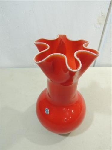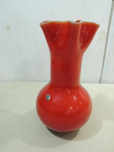 VINTAGE 10"H ENESCO ITALIAN ART RUBY GLASS VASE. AS SHOWN. VIEW PICTURE FOR DETAIL.