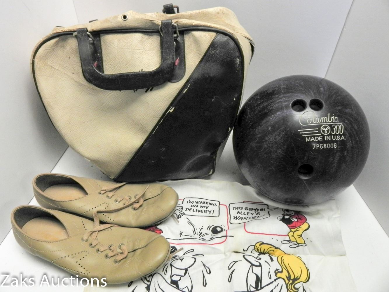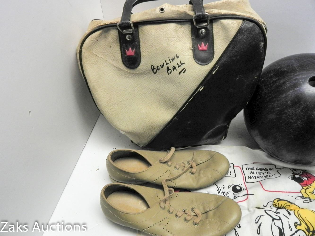 VINTAGE 10 LB BOWLING BALL IN VINTAGE LEATHER CASE
