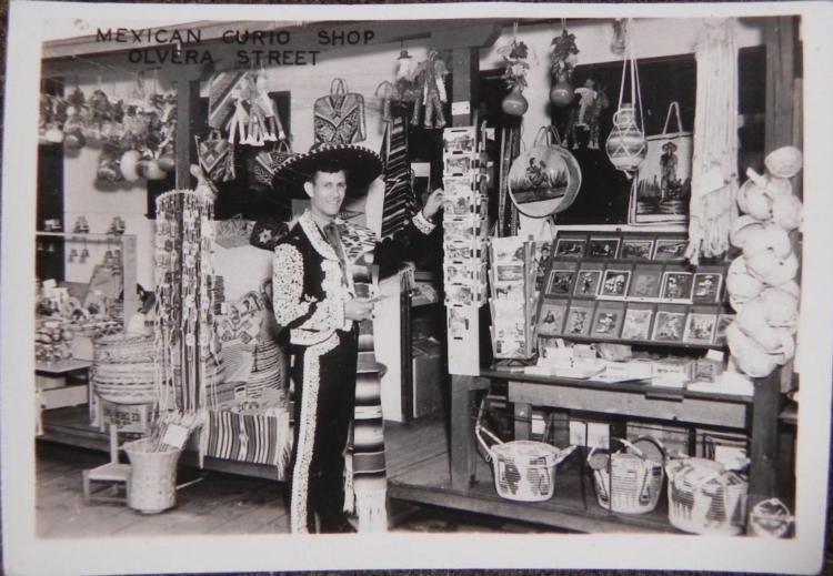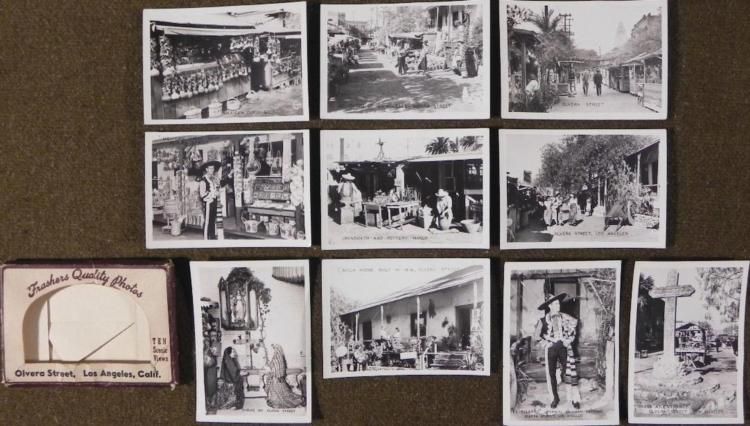 VINTAGE 10 PHOTOS "OLVERA STREET IN LA"-MEXICAN AREA-GREAT PICS INFOLDER-2 PENNY STAMPSGOOD CONDITION IN FOLDER