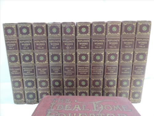 VINTAGE 10 VOLUME SET COMPLETE WORKS, RUYARD KIPLING. AND 1905 HOME EDUCATOR BOOK. AS SHOWN. VIEW PICTURE FOR DETAIL.
