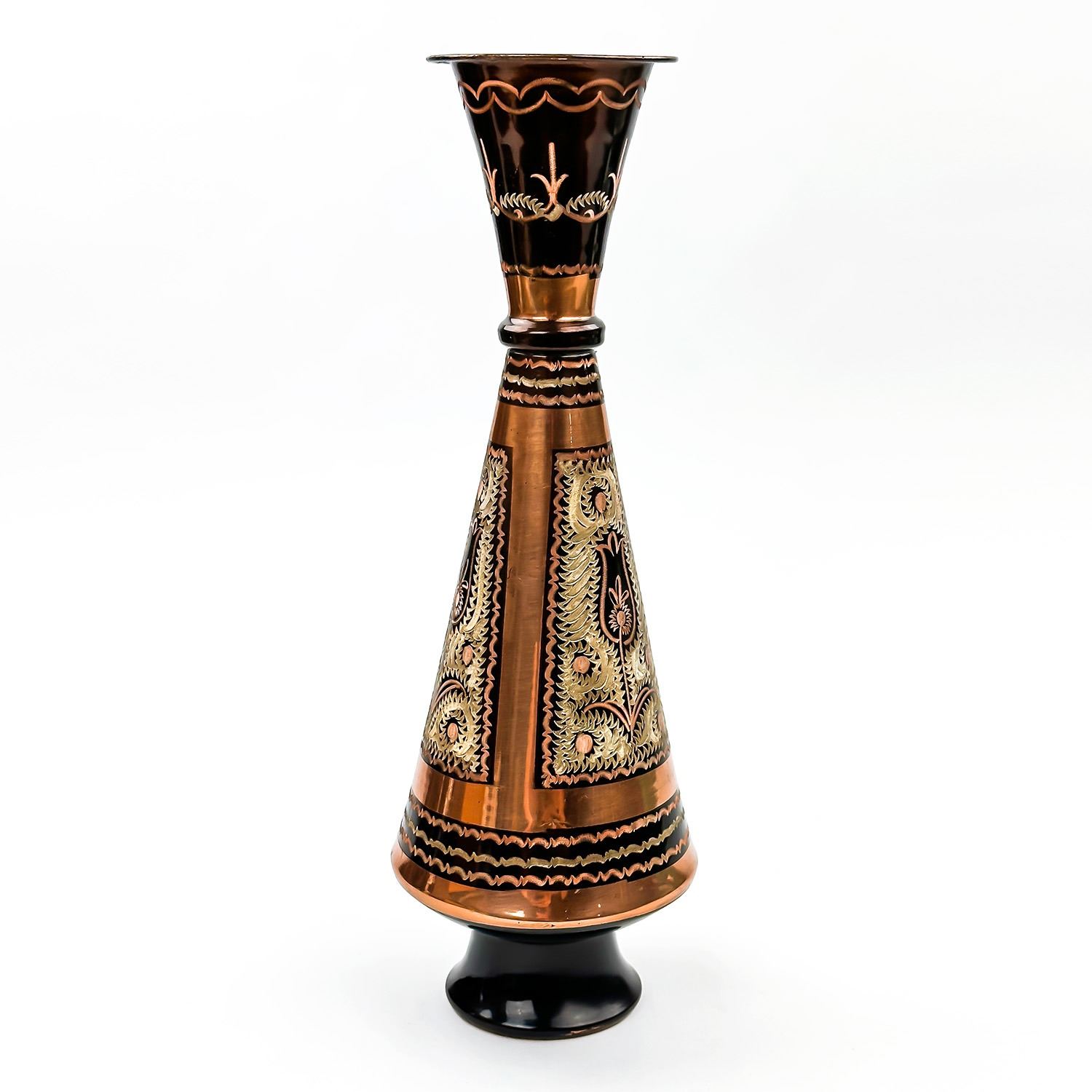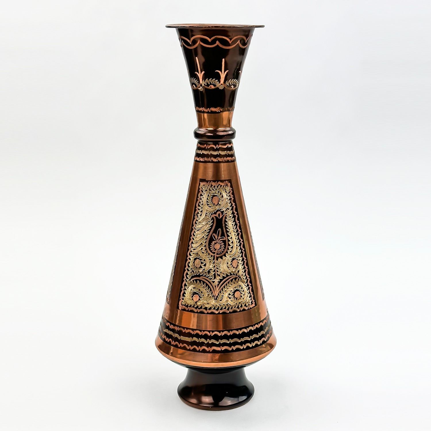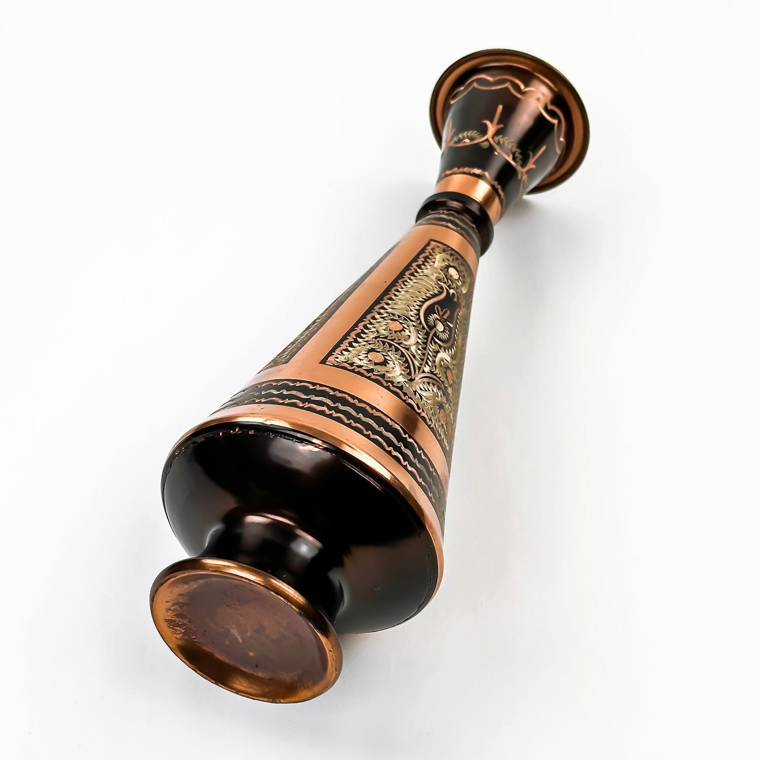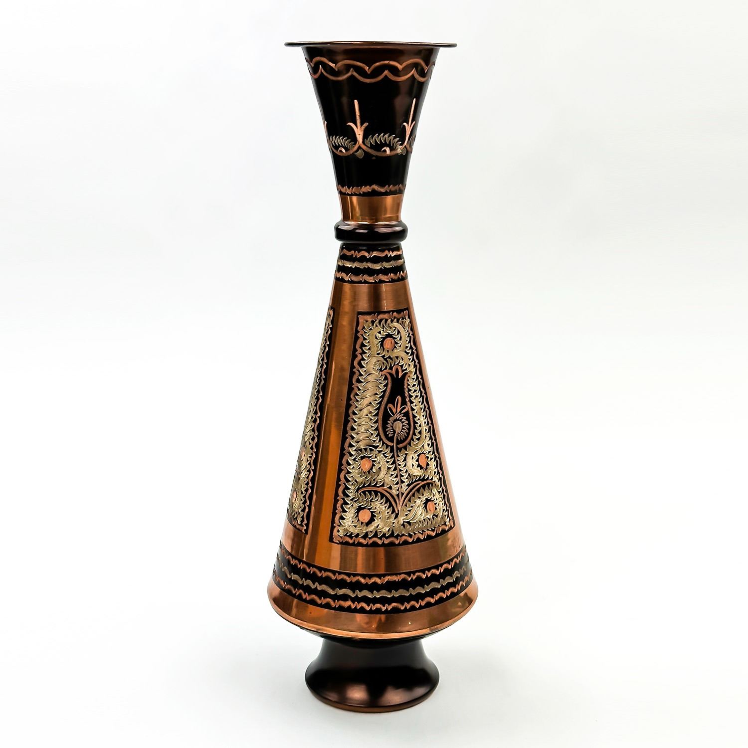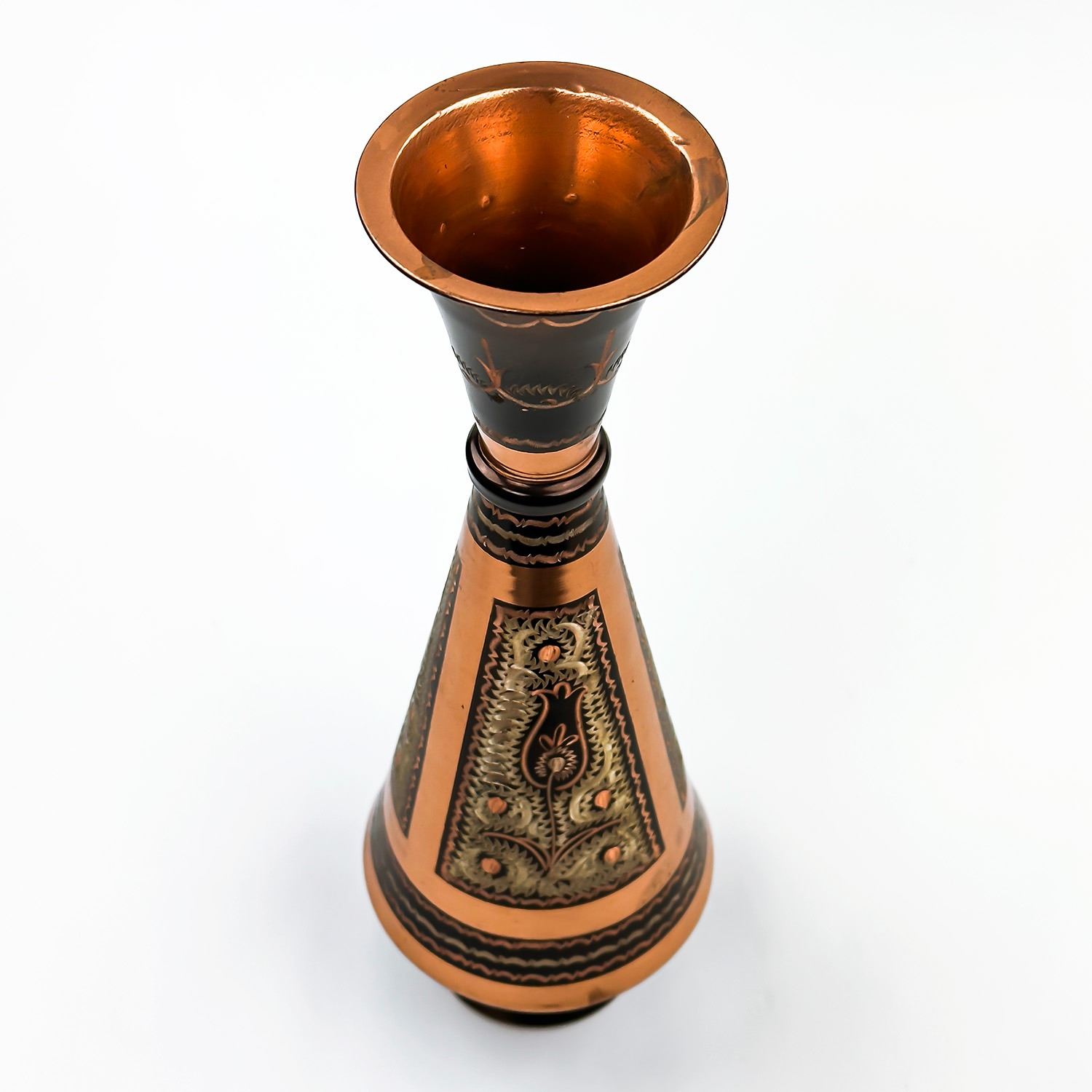 #8878 - ORNATE ENGRAVED COPPER VASE. HAND CRAFTED ART SCULPTURE. MEASURES: 11” (28 CM) TALL BY 3.5” (9 CM) WIDEST DIAMETER***ITEM(S) LOCATED IN LETHBRIDGE ALBERTA. FREE TRANSPORT TO EDMONTON OFFICE AVAILABLE FOR THIS AUCTION. WORLDWIDE SHIPPING IS AVAILABLE FOR ALL ITEMS