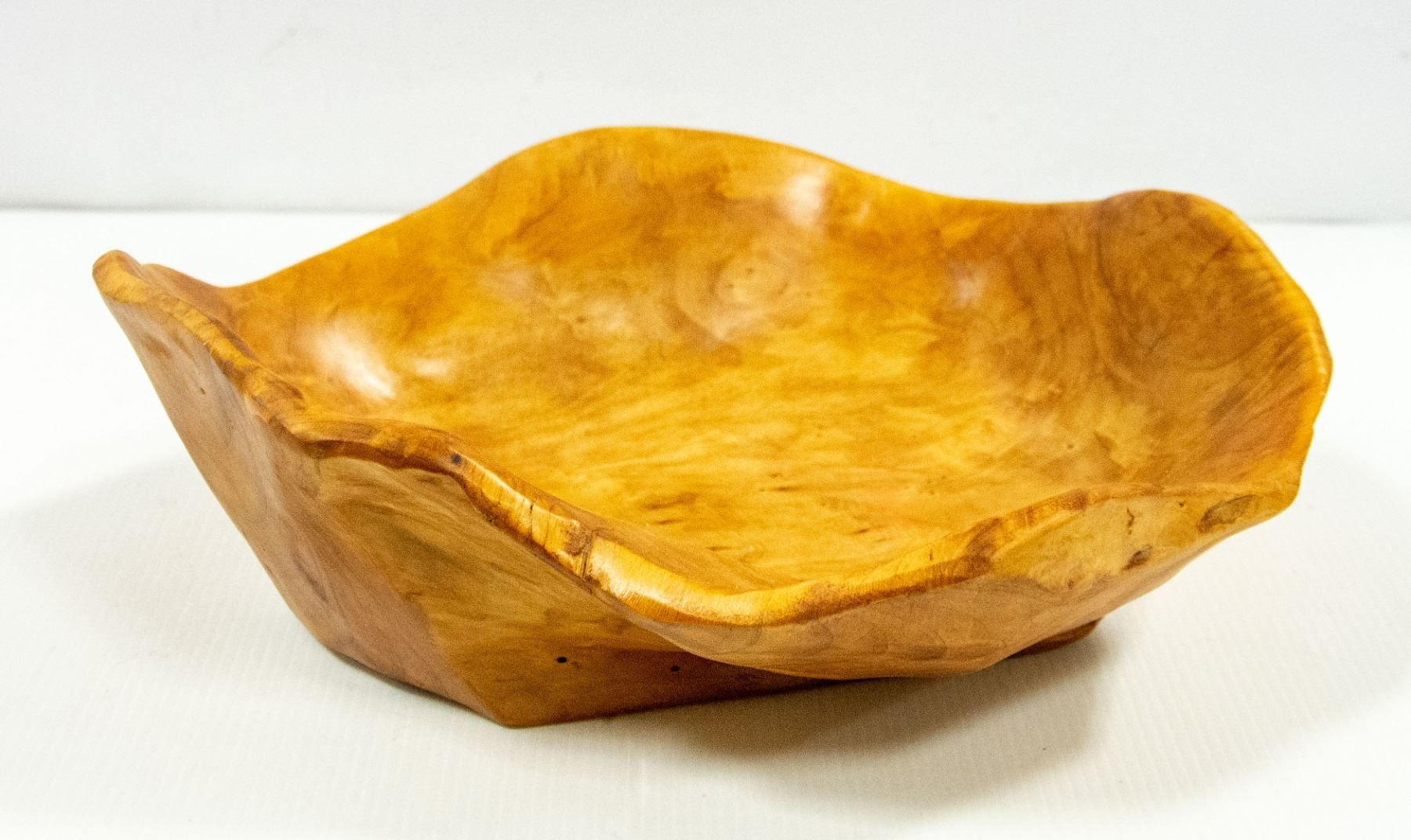 VINTAGE 12" HAND CARVED BURL WOOD BOWL