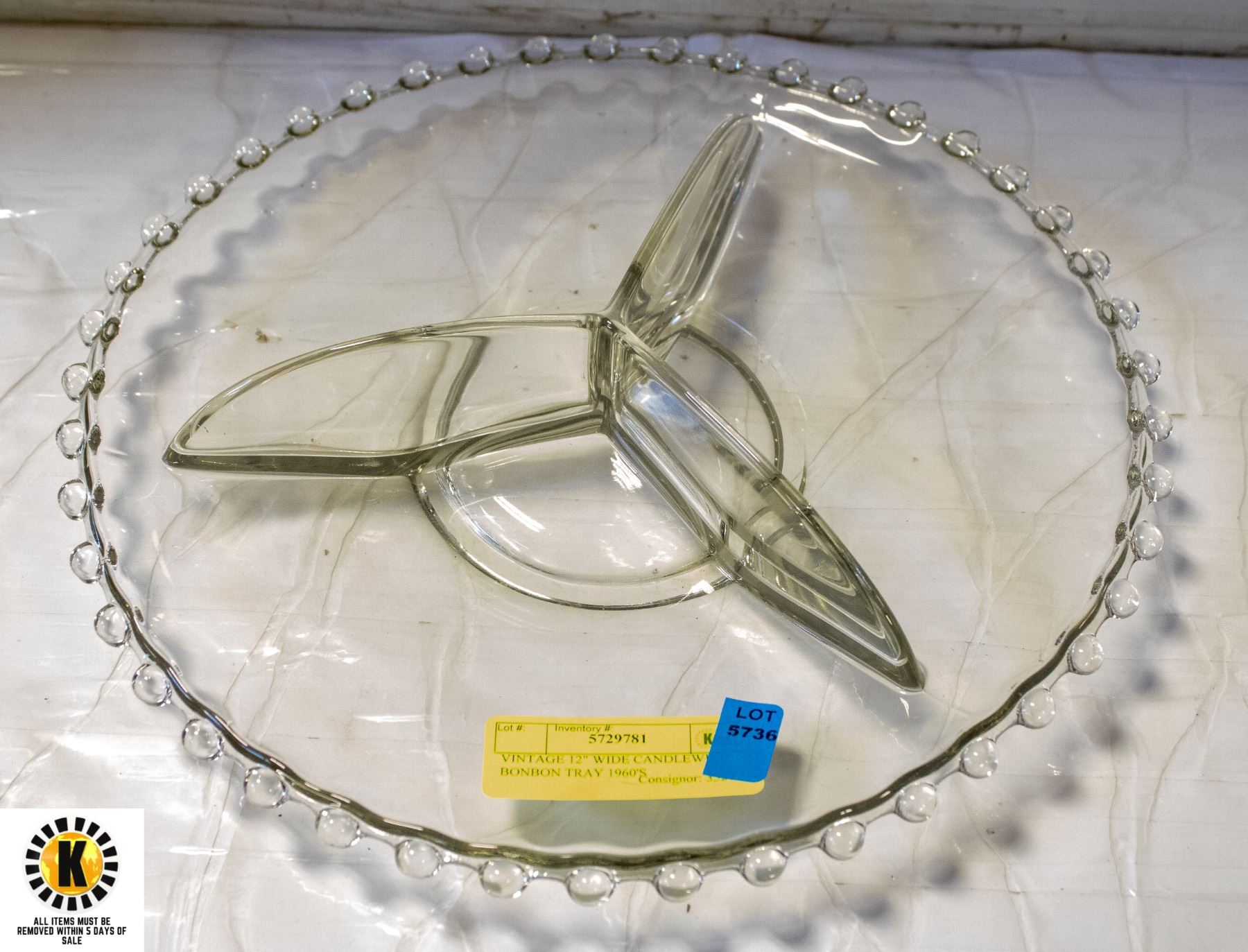VINTAGE 12" WIDE CANDLEWICH BONBON TRAY 1960'S