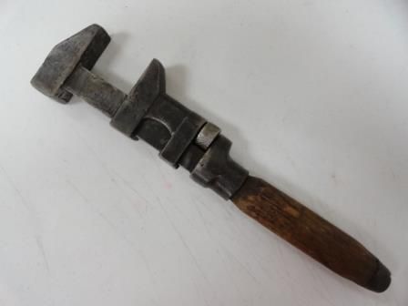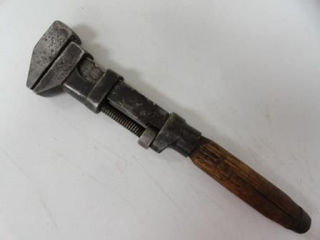 VINTAGE 12" WOOD HANDLE PIPE WRECH