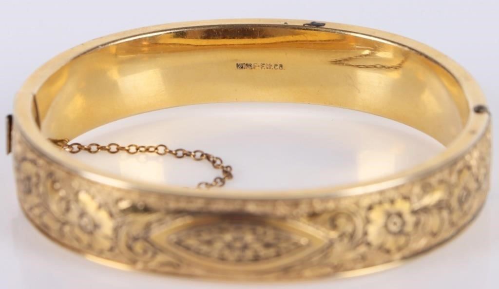 Vintage 12k yellow gold filled ornate ladies bangle bracelet.